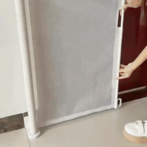 Keep your home safe and organized with this retractable mesh pet gate. Easy to install without tools or drilling, it’s perfect for doorways, staircases, hallways, and more. Designed for both pet and child safety, this gate acts as a barrier while maintaining visibility and airflow.